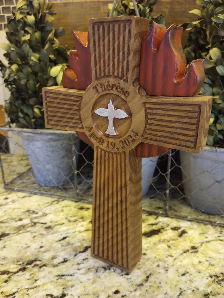 Our initial custom designed pine confirmation crosses used pine. These were beautiful, but we felt that upgrading the wood to